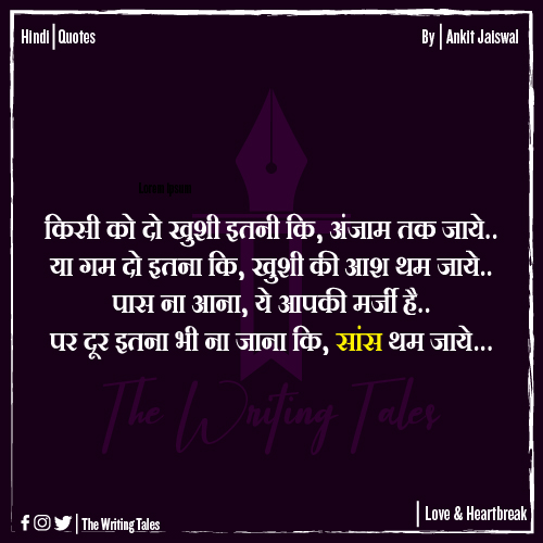 पर दूर इतना भी ना जाना कि, सांस थम जाये...